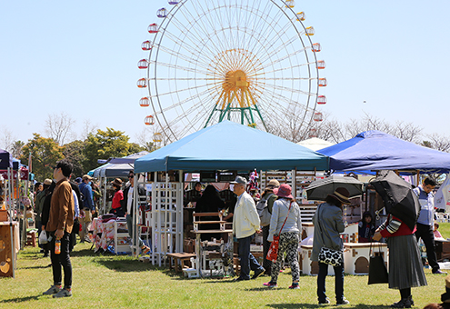 神戸市内のイベント会社などで構成する実行委員会の主催でハンドメイドのアクセサリーや流木を材料にした雑貨、無添加ジャムなど約150ブースが出店。ジャグリング、バルーンアートのパフォーマンスステージもあり、家族連れなど大勢の人出でにぎわった。