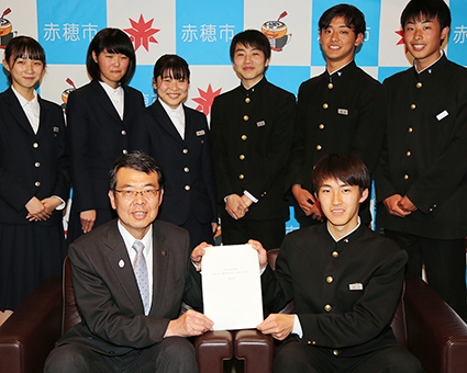 フィールドワークによる提言レポートを赤穂市に提出した赤穂高校生徒会