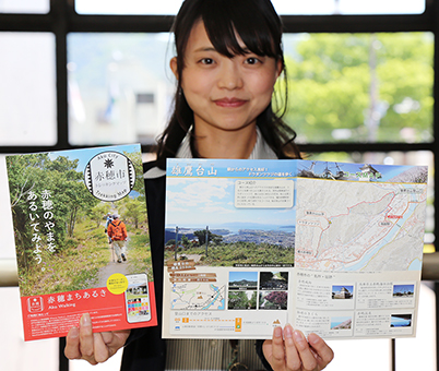 JRとのアクセスが良い雄鷹台山、坂越湾を一望できる茶臼山・宝珠山、「赤穂富士」とも呼ばれる尼子山の3ルートについて地図と写真を掲載。市内の名所・旧跡、グルメ情報もコンパクトに収録している。観光アプリ「赤穂まちあるき」とも連動しており、スマホ画面に現在地やルートが表示されて便利。