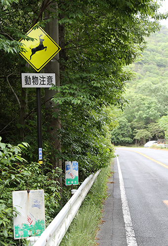 赤穂署によると、高取峠は管内で最も鹿との衝突事故が多く発生する場所で、鹿のイラストの「動物注意」の道路標識が設置されている。警察は「標識を見たらスピードを出さずに通過すること。鹿は群れで行動する場合があるので、1頭よけても油断せず、しばらくは徐行したほうがよい」と注意を呼び掛ける。