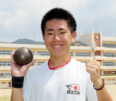 陸上競技の魅力を「記録を伸ばすために練習メニューとかを考えて、実際に成果が出ること」と話す藤原君。「今まで練習してきたことを全部まとめれば、13メートル50〜60を出せるイメージはある」と全国大会で会心の一投を狙っている。