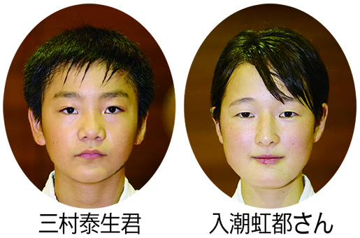 三村君は「次は中学生の部で優勝したい」と意欲を見せ、入潮さんは「同学年のライバルに負けないように練習を頑張る」と精進を誓った。