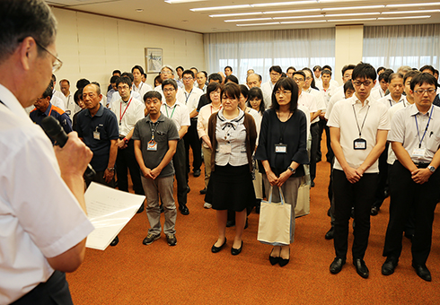 職員らは神妙な面持ちで訓示に耳を傾け、言葉少なに会議室を後にした。