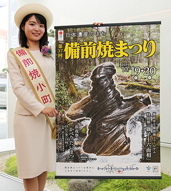 「備前焼まつり」をPRする第33代備前焼小町の蔵原由希子さん