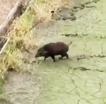 動画はスマートフォンのカメラで撮影した約30秒。濃い茶色のイノシシ1頭が休耕田から茂みに身を隠すまでが捉えられた。