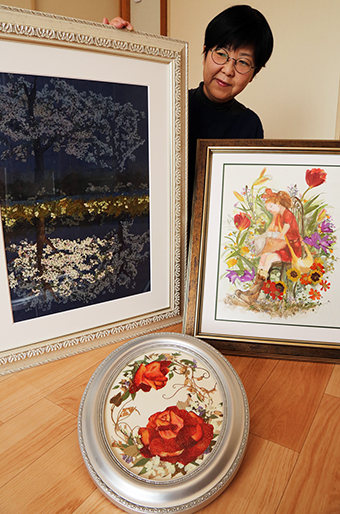 姫路、相生などで計6教室を開く押し花作家の藤井登貴子さん(61)=上郡町山野里=が2012年から毎年開いている個展で赤穂市内では昨春に続き2回目となる。