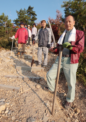 善意で登山道を整備している松井富栄さん。早朝登山の愛好者から感謝の声