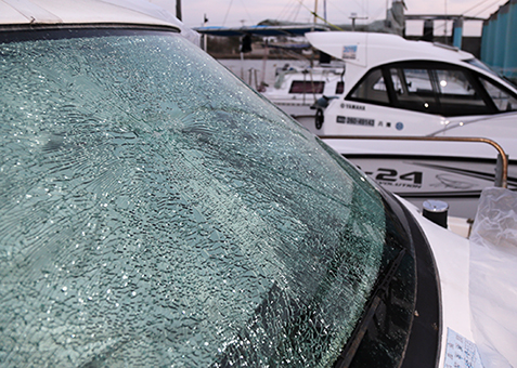 ボートの所有者の話では、8日午後の時点では異常はなかった。係留施設を整備した県によると、同市上仮屋のボートパークでも10月31日に1隻、11月20日に2隻でフロントガラスの破損が確認されたという。