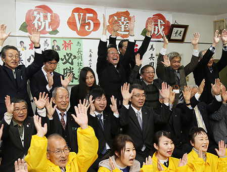 ▼長岡県議が5選=兵庫県議選の赤穂市・赤穂郡・佐用郡選挙区は現職の長岡壮壽氏(58)=無所属、自民推薦=のほかに立候補がなく、前回に続き無投票で5選が決まった。
