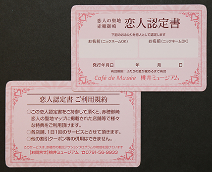 お得な特典や割引を受けられる「恋人認定書」