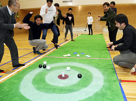 同ゼミでは昨年4月から市内のスポーツクラブ21関係者と市内におけるスポーツ振興の現状や課題を意見交換し、ターゲットバードゴルフやキーンボールなど既存のニュースポーツを一緒にプレー。▽運動量の多い種目は年齢層が制限される▽娯楽性と競技性を同時に充足するのは難しい▽競技によっては広いスペースが必要―といった課題を見つけ、新種目の目指すべき方向性を模索した。