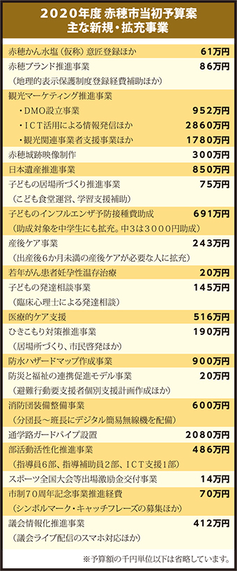 赤穂市2020年度当初予算案 主な新規・拡充事業