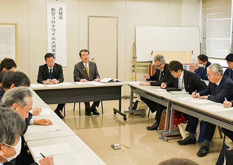 新型コロナウイルス感染症への対応を協議した対策本部会議=市提供