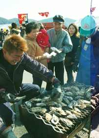 公園内の「太陽の丘ステージ」周辺で午前10時から午後3時まで。焼きガキ約9000個を無料でサービス。1杯100円のカキみそ汁は3000杯を用意する。新鮮なカキを特価で提供する即売コーナーでは、むき身(500グラム)800円、殻付き(約1・8キロ)1000円で販売。
