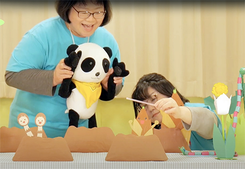 1作目は赤穂東児童館が制作。同館で子どもたちに一番人気があるというパンダのぬいぐるみを主人公に4人の職員で演じ、5分半の動画になった。職員の内波成子さんは「季節を感じられるような物語にしました。早く児童館で一緒に遊べる日が来てほしいですが、それまでの間、お家で楽しんで」と話した。