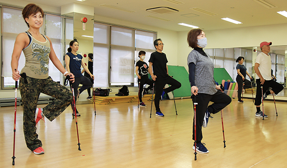 ポール支えに無理なくフィットネス