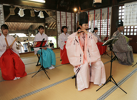 奉納演奏で稽古の成果を披露した赤穂高校雅楽部