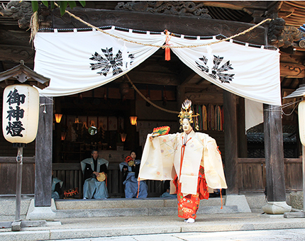 奉納後は神戸女子大学古典芸能研究センター非常勤研究員の大山範子氏と生浪島宮司が河勝と能楽の関わり、同神社に秘宝として伝わる舞楽面などについて対談。大山氏は、河勝にまつわる伝承について、「まったくいわれがないということではなく、基になっているものが代々大切に語り継がれてきたのではないか」と語り、生浪島宮司は「能の奉納をご祭神の河勝公も非常に喜んでおられるはず」と話した。