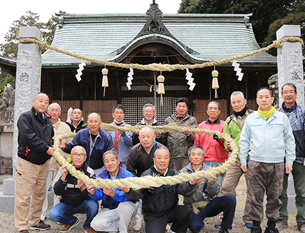 同神社では2008年から自治会と老人会の有志が「西有年注連縄保存会」を結成。会員の高齢化で15年に解散した後も協力会を立ち上げ、毎年12月に大しめ縄を奉納している。