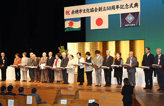 ▼市文化協会50周年=1969年結成。功労者表彰や加盟団体によるステージなどで節目を祝った。