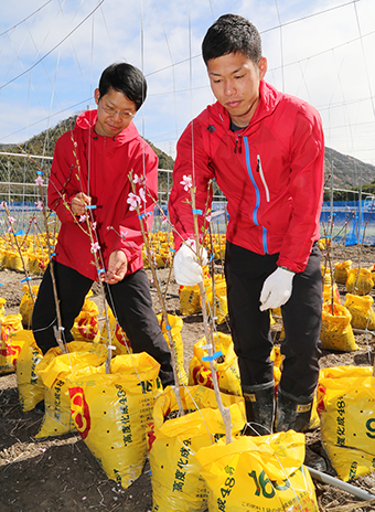 赤穂で新規就農した榊原昂輝さん(右)と小川敬生さん