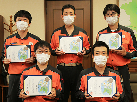 交通事故負傷者を救護した善行で「のじぎく賞」が贈られたJR西日本姫路電気区のみなさん