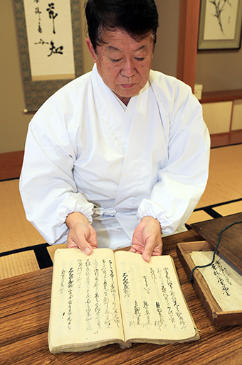 ▼義士自筆の覚書見つかる=赤穂義士・奥田孫太夫が討ち入りに至る経緯を克明に記録した「落去留書」。所在不明となっていたが赤穂大石神社(飯尾義明宮司)が収蔵し一般公開。