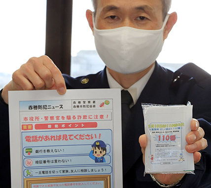 赤穂署のまとめでは、昨年に同署が受理した通報件数は2853件(11月末時点)で前年同期比で49件増加。「事件、事故の場合は110番で緊急通報を。急を要さない相談や情報提供は通常回線で連絡してほしい」と呼び掛けている。