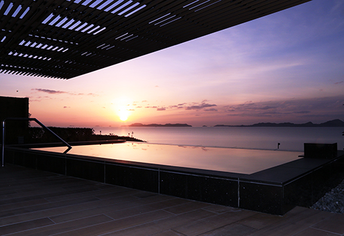 拡張した1階ロビーは新たにテラスラウンジを設けて開放感がアップ。大浴場は、瀬戸内海と湯面が一体に見えるインフィニティ露天風呂に改修し、内湯の大浴槽も温泉に変更した。最上階の4階は全客室ウッドデッキバルコニー付きのクラブフロアとなり、うち一室は半露天風呂が付いている。
