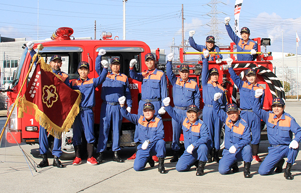 市は2010年度から市内各分団のポンプ車を年1台ずつ更新しており、今年度で11分団目。今月3日に加里屋の市防災センターで行われた引渡式で萩原俊宏分団長(59)が「地域の防災防火、安心安全のため心機一転がんばります」と決意を述べ、分団員らが新車両で操法を披露した。