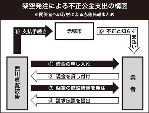 「(元課長から)『ちょっとお金を貸してくれへんやろか』と言われたのが始まりでした。『浄水場で急きょの修繕があって、予算を取ってないから業者に支払いができへん、貸してくれへんやろか』と。それで、貸したんですけど、その貸した金の返し方が、(元課長の)指示で『こういう請求書を作ってくれ』と。それを持っていったら後日、役所から振り込みがあった」