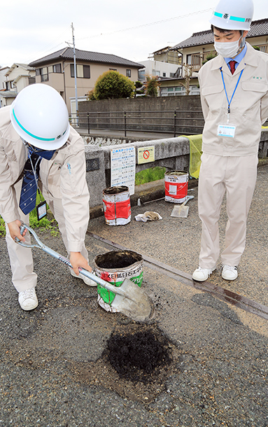 同課によると、道路損傷に関する通報はカーブミラーのゆがみなどを含めると、「だいたい1日に1件」あり、緊急性が高い場合は即日補修に着手するという。今回も「緊急性が高い」として、通報したその日のうちに職員の手で補修が行われた。