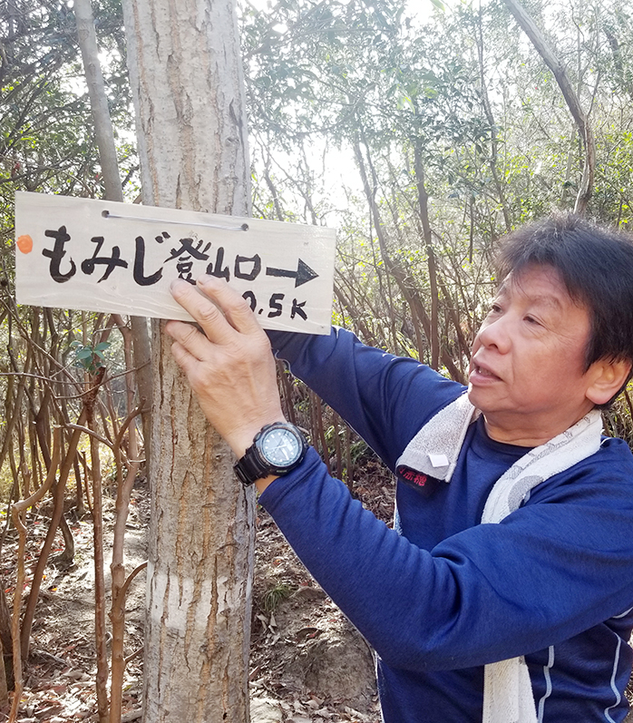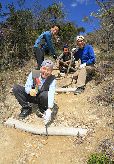 また、雄鷹台山のメインルートには、急な登りが続く8合目と9合目の間に階段約80段が整備された。会員仲間数人が担ぎ上げた倒木や流木を材料に取り付けた。「以前に足を滑らせて捻挫したことがあったので、安全に登れるようにと整備しました」と元沖町の富彌博義さん(73)。小賀会長は「みんなのおかげで、どんどん良い山になっている」と誇らしげだ。