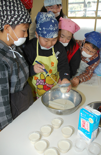 プリンを試食した馬江克弥君(10)は「大豆には栄養がたくさん含まれていることがわかった」と話していた。