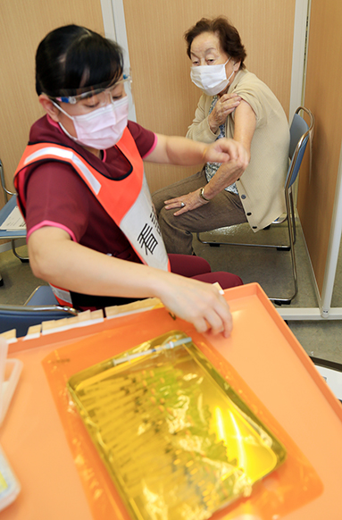 鷏和の65歳女性は「ちょっとチクッとした感じ」と接種時を振り返り、「離れて暮らす孫とも長いこと会えていない。2回目の接種が終わったら会えるかな」と話した。