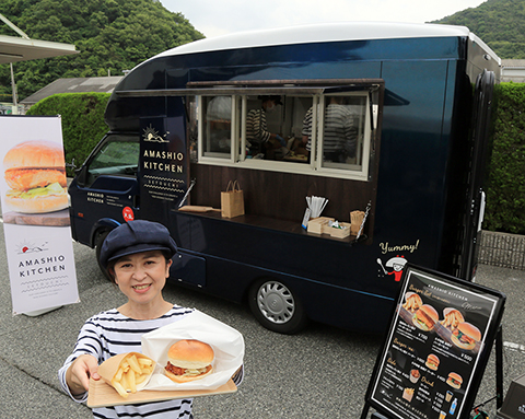 特製バーガーなどで自社ブランドの魅力を発信する赤穂化成のキッチンカー「アマシオ セトウチ」