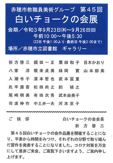 市内中学校の美術家教師を中心に1976年結成。現在は退職者25人が在籍し、各自が自由な立場で技術向上に励んでいる。