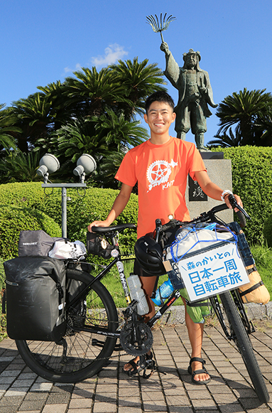 鹿屋市の森海翔さん(23)は今年4月、ロードバイクにテントや寝袋、着替えなどを積んで自宅を出発。日本列島を時計回りに巡っている。これまでに全行程の約4分の3にあたる7700キロを走破した。