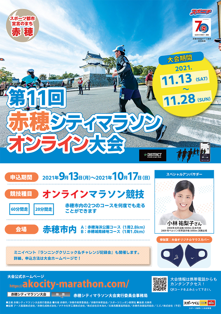 赤穂シティマラソン オンライン開催で1000人募集