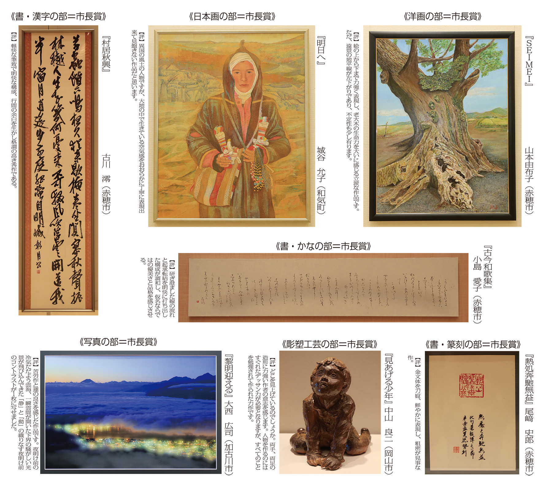 入賞者は次のとおり。敬称略。住所表記がない場合は赤穂市。作品名は市長賞のみ表記。