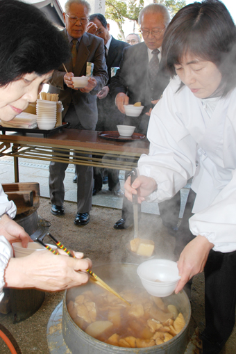 義士の命日に大石神社で振る舞われた“厄除け大根”