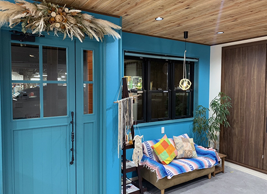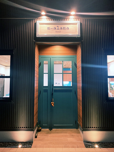 お城通りからJR播州赤穂駅東約150メートルの国道250号沿いへ移転。ブルーグリーンのドアが印象的な新店舗で、ヘアセット、ヘアメイク、着付けに加えて本格的なシェービングも提供する。