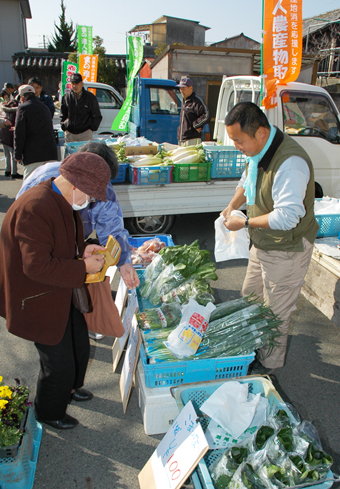 地産地消を推進しようと、昨年12月に初めて開催された。出店者にとっては軽トラックで運び込んだ品物を荷台の上で販売する手軽さが好評。客からも継続を望む声が多く、毎月第1木曜日に行うことになった。