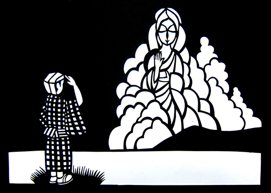 安左衛門さんが入道雲をながめていると、その雲がだんだん仏様の姿にみえてきました。