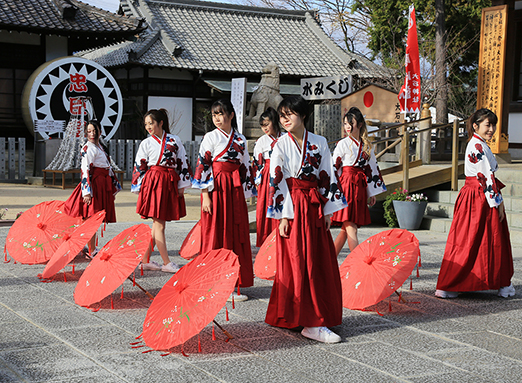 この日は振り付けを担当した宮本美起さんが主宰する「RAM.ダンススタジオ」のメンバー7人が演舞。赤と白を基調にした袴姿に和傘を持ち、軽快なリズムでダンスを披露した。
