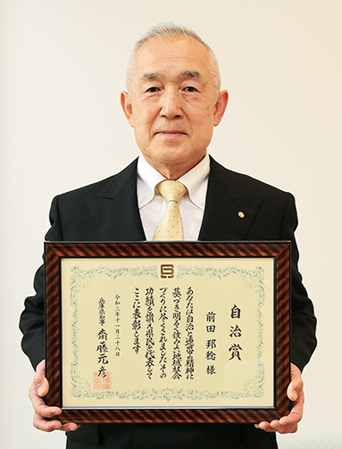 兵庫県自治賞を受賞した前田邦稔・赤穂交通安全協会長