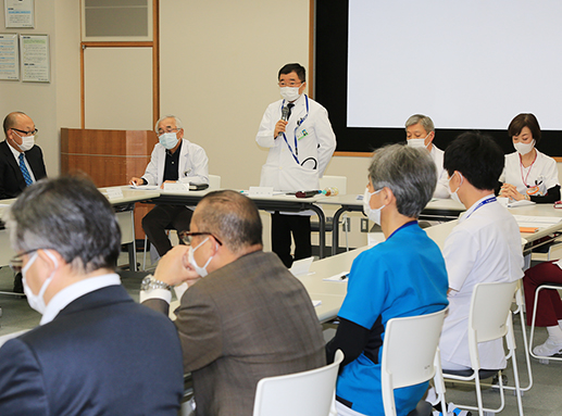 懇談会には、市民団体代表や医療関係者などが出席。藤井隆院長をはじめ病院幹部が経営改善に向けた改革プランの実施状況と同病院を取り巻く現状と課題を説明した上で、出席者から質問や意見を受け付けた。