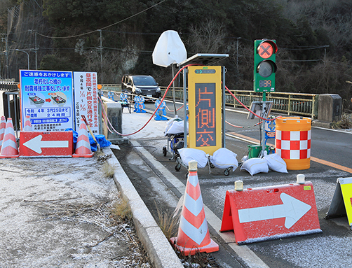 現場の片側通行は3月上旬ごろに10日間の中断をはさんで今年3月下旬まで続く予定。施工業者は「今後も状況を見て必要に応じて設定を変更していきたい」と話している。