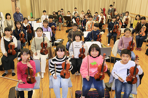 20期生の小学5年、北村結さん(11)=長池町=は「弓の持ち方が難しいけれど、間違えずに弾けるようになったらうれしい」とこれまでの練習を振り返り、修了後も毎年出演している9期生の高校3年、中河玲音さん(18)=山手町=は「発表会は一年間の練習成果を家族や友人に聴いてもらえる機会。みんなと気持ちを合わせて曲をつくりあげたい」と話した。