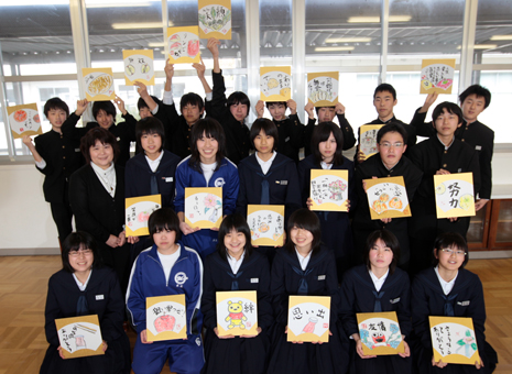 作品は卒業式当日、中央廊下に展示され、各自が持ち帰ることにしている。